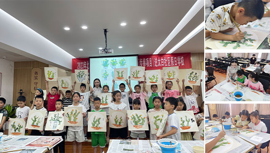 活動(dòng)現(xiàn)場(chǎng),虞老師向孩子們講述了國(guó)畫(huà)的相關(guān)知識(shí),并介紹了毛氈、宣紙、毛筆等基本作畫(huà)工具以及執(zhí)筆方法和繪畫(huà)基本筆法。通過(guò)色彩的濃淡變化、虛實(shí)關(guān)系,采取不同筆法的運(yùn)用處理,突出繪畫(huà)的層次。隨后,在老師的指導(dǎo)下,孩子們按照步驟認(rèn)真作畫(huà),不一會(huì)兒,靈動(dòng)活現(xiàn)的仙人掌便出現(xiàn)在大家的畫(huà)紙上。通過(guò)學(xué)習(xí),大家領(lǐng)略到了傳統(tǒng)國(guó)畫(huà)藝術(shù)的博大精深、韻味悠長(zhǎng)。