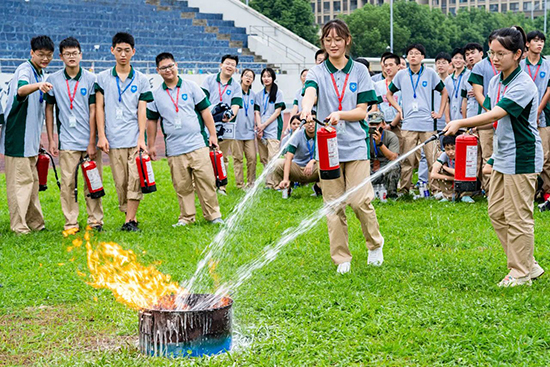 湖州鳳凰消防救援站宋教員結合校園火災發生的特點及日常防火注意事項等細節入手,用通俗易懂的語言向全體新生講解初期火災撲救、逃生自救以及發生火災如何正確報警等消防安全常識,并手把手教學生如何正確使用滅火器,讓學生現場進行實操訓練。