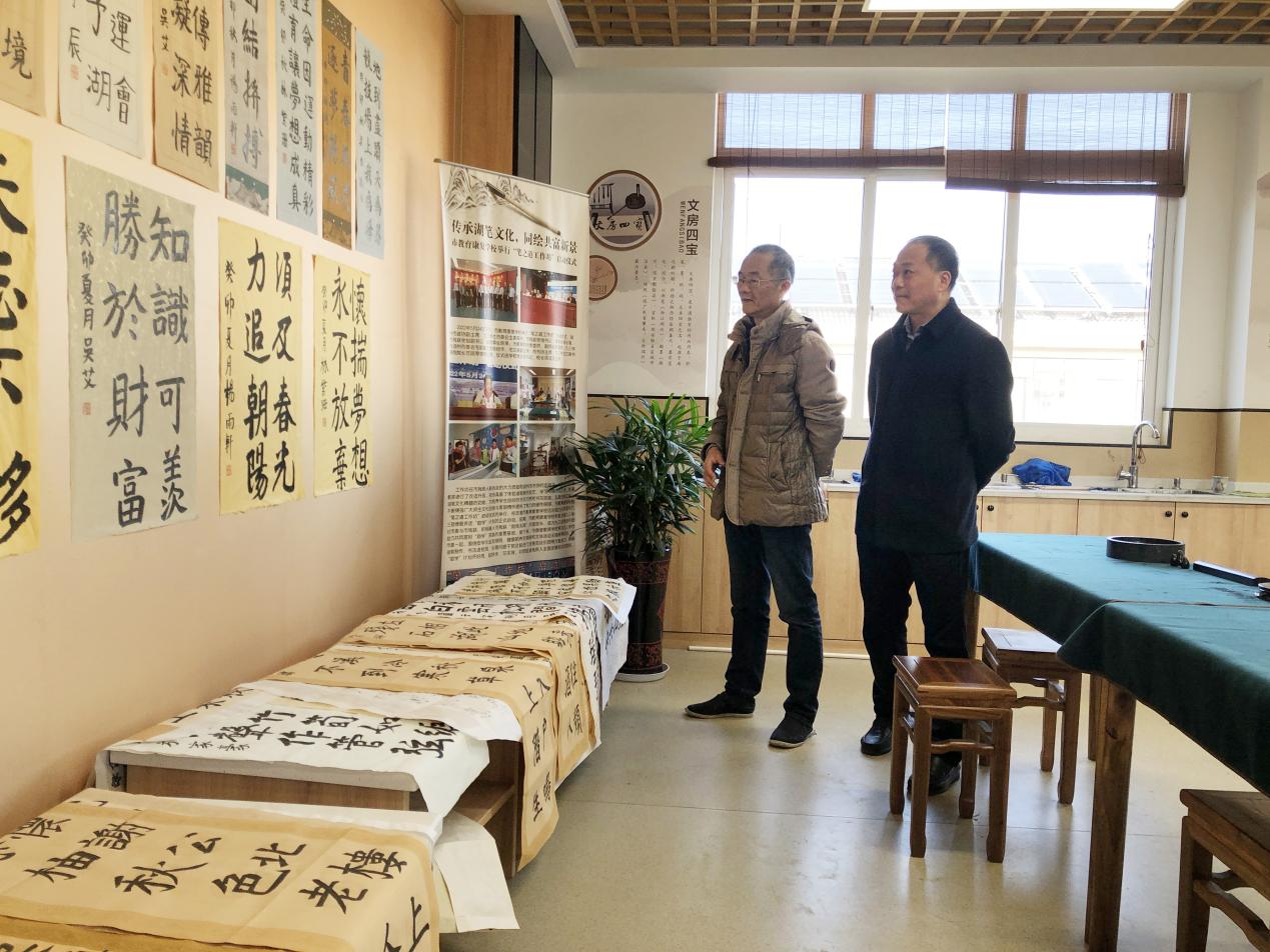 在湖州特殊教育實驗學校和教育康復學校,名校長工作室一行參觀了學校實訓教室,詳細了解了學校的教學設施和教學環境,欣賞了特教兒童和聽障兒童的手工藝作品等。