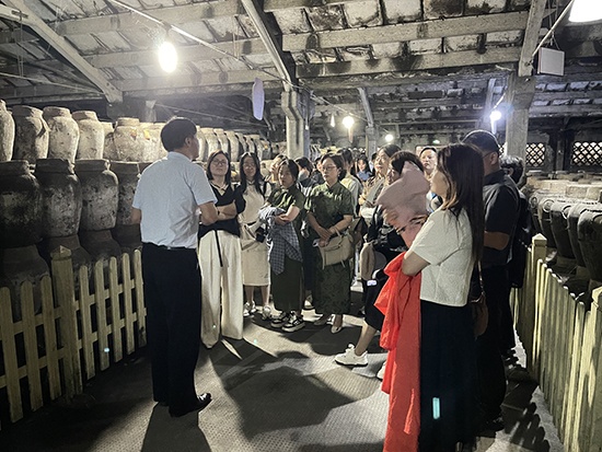 隨后,考察團(tuán)參觀了學(xué)校的校外教學(xué)實踐基地——古越龍山中央酒庫和安橋頭村“魯迅外婆家”景區(qū)。在古越龍山中央酒庫,考察團(tuán)成員聞著酒香,跟著講解員一道追溯紹興黃酒源遠(yuǎn)流長的歷史文化。他們在裝飾精美的花雕酒壇前流連,在一排排堆疊如山的陳年酒壇前打卡,欣喜之情溢于言表。在安橋頭村“魯迅外婆家”景區(qū),考察團(tuán)成員跟隨講解員先后參觀了祝福廣場、魯美動漫基地、文化禮堂、朝北臺門等景點,沉浸式感受著魯迅先生小時候在外婆家跟小伙伴們一起看社戲、釣河蝦、弶鳥雀、抓跳魚兒等有趣的童年生活。