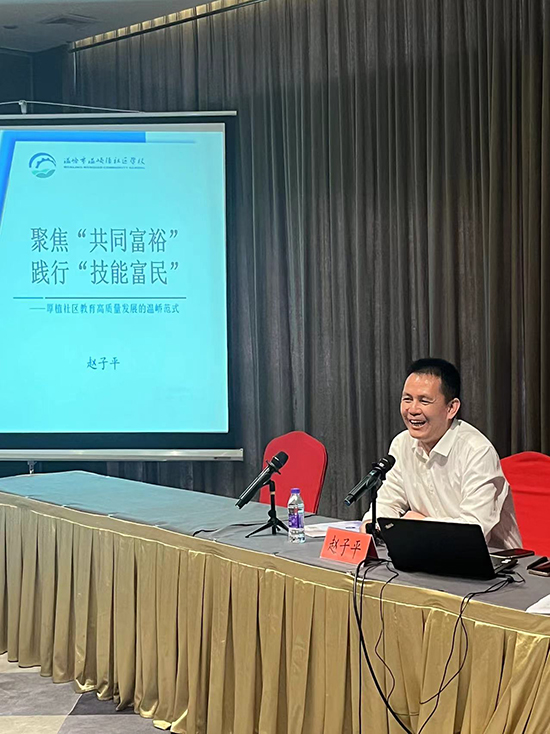 溫嶺縣溫嶠塢根片成校區(qū)域負(fù)責(zé)人、副研究員趙子平作了主題為《聚焦“共同富裕”,踐行“技能富民”》的專題講座。溫嶠社區(qū)學(xué)校以“滿足百姓需求、服務(wù)支柱產(chǎn)業(yè)、助推鄉(xiāng)村振興”為辦學(xué)宗旨,聚焦特色產(chǎn)業(yè),傾心助企促發(fā)展;聚焦科技下鄉(xiāng),盡心助農(nóng)促增收;聚焦新興業(yè)態(tài),恒心助商促多元;聚焦百姓需求,暖心助民促就業(yè)。