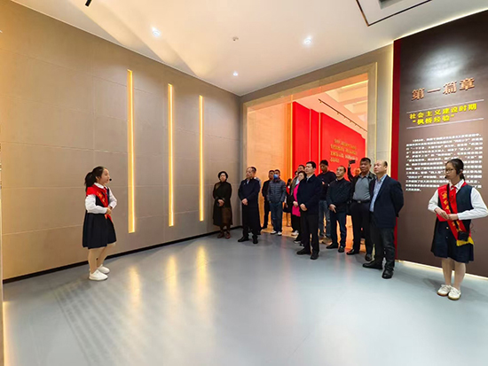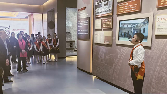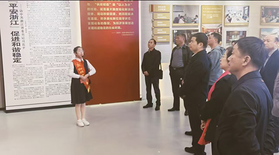 趙昊一行在諸暨市關(guān)工委主任周雪芬、諸暨市關(guān)工委專職副主任應(yīng)仲九等的陪同下來到大廳。講解員們分塊站好講解位置,面對一位位陌生的客人,從容不迫、神態(tài)自若地講解有關(guān)“楓橋經(jīng)驗(yàn)”幾個區(qū)塊的內(nèi)容。從入口的巨型壁畫,到“楓橋經(jīng)驗(yàn)”的誕生,再到“楓橋經(jīng)驗(yàn)”的演進(jìn)和“楓橋經(jīng)驗(yàn)”的發(fā)展,一直到2023年9月20日下午習(xí)近平總書記親臨“楓橋經(jīng)驗(yàn)陳列館”作出“要堅(jiān)持好、發(fā)展好新時代‘楓橋經(jīng)驗(yàn)’,堅(jiān)持黨的群眾路線,正確處理人民內(nèi)部矛盾,緊緊依靠人民群眾,把問題解決在基層、化解在萌芽狀態(tài)”的重要指示為止。小小講解員們富有表情、帶著童腔講述著一個個發(fā)生在身邊、家鄉(xiāng)踐行“楓橋經(jīng)驗(yàn)”的事例與故事,流利熟練地講解讓參觀者們聽得有滋有味,對“楓橋經(jīng)驗(yàn)”產(chǎn)生與發(fā)展歷程有了較為具體的了解,深刻領(lǐng)會“小事不出村,大事不出鎮(zhèn),矛盾不上交,就地解決”的先進(jìn)經(jīng)驗(yàn)。面對大家的提問,小小講解員們盡己所能彬彬有禮地作了一一解答,充分表達(dá)自己對“楓橋經(jīng)驗(yàn)”的熟悉和了解。
