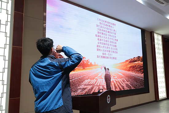 蔡力杰告訴同學們相信自己,激發潛能;乾坤未定,一切皆有可能;珍惜機會,全力以赴。并帶領全體同學宣誓,喊出震徹云霄的誓言: