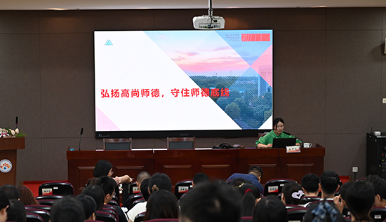 王博士學(xué)識淵博,貫通中西。她引經(jīng)據(jù)典,從中國古代經(jīng)典《禮記?學(xué)記》《師說》到國外學(xué)者培根、雅思貝爾斯關(guān)于師德的論述,從內(nèi)在修養(yǎng)與外在行為兩個維度,深入闡釋了師德師風(fēng)的豐富內(nèi)涵。期間,王博士分享了一系列真實的反面案例,并結(jié)合習(xí)近平總書記提出的好老師 “四個標(biāo)準(zhǔn)”,警示全體教師要堅守“三個堅持、三個突出、四個嚴(yán)格、四個強(qiáng)化”的師德底線,筑牢思想防線。講座最后,王博士還就教育家精神進(jìn)行了講解,強(qiáng)調(diào):要堅定理想信念,爭做胸懷“國之大者”的典范。