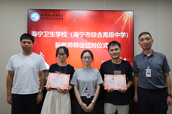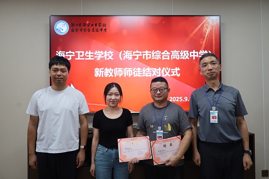 9月11日,海寧衛生學校(海寧市綜合高級中學)在黨員活動室隆重舉行新教師入職暨師徒結對儀式,傳承教育薪火,共筑育人夢想。學校黨總支書記顧忠強、校長陳杰、學工處處長陳燕等領導出席活動。