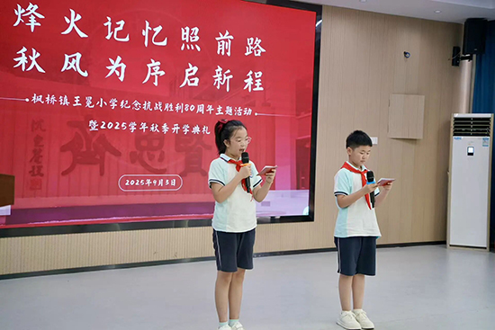 9月3日上午,諸暨市楓橋鎮(zhèn)王冕小學(xué)以“烽火記憶照前路 秋風(fēng)為序啟新程”為主題,同步開展紀(jì)念中國人民抗日戰(zhàn)爭暨世界反法西斯戰(zhàn)爭勝利80周年活動(dòng)與2025年秋季開學(xué)典禮,全體師生齊聚主會(huì)場——報(bào)告廳與34個(gè)班教室分會(huì)場,在莊嚴(yán)與期盼中開啟新學(xué)期的篇章。