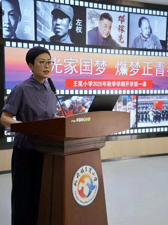 校長趙娜以《追光家國夢 燃?jí)粽啻骸窞轭}講授開學(xué)第一課。趙娜結(jié)合抗戰(zhàn)歷史與新時(shí)代少年的使命,勉勵(lì)學(xué)生們既要銘記先烈們用熱血鑄就的民族精神,又要以青春之我、奮斗之我,將個(gè)人成長融入家國夢想,為新學(xué)期注入了溫暖而堅(jiān)強(qiáng)的力量。