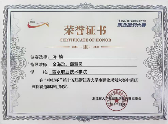 在大學(xué)期間,她收獲的榮譽(yù)遠(yuǎn)不止技能競賽獎(jiǎng)項(xiàng):浙江省政府獎(jiǎng)學(xué)金、校一等獎(jiǎng)學(xué)金、三好學(xué)生、禁毒微視頻大賽一等獎(jiǎng)、寒假社會(huì)實(shí)踐優(yōu)秀個(gè)人、校優(yōu)秀團(tuán)員、校勞動(dòng)標(biāo)兵、德潤麗職優(yōu)秀個(gè)人、校第十五屆“十佳大學(xué)生”……這些榮譽(yù)覆蓋學(xué)習(xí)、實(shí)踐、學(xué)生工作等多個(gè)領(lǐng)域,展現(xiàn)出一名優(yōu)秀紹財(cái)旅學(xué)子全面發(fā)展的亮眼姿態(tài)。