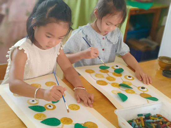 繪白露。白露有吃龍眼的習俗。龍眼有益氣補脾、養血安神等多種功效,還可以治療貧血、失眠等多種疾病。幼兒們動起小手,用拓紙開始創作一幅幅活靈活現的龍眼畫。通過畫、涂、蓋,龍眼畫栩栩如生地出現在眼前了。
