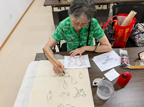 課堂上沒有年齡的隔閡,只有對水墨丹青的熱愛。一筆一劃勾勒間,時光仿佛慢了下來,老人們在筆墨揮灑中舒展身心,不僅收獲了繪畫技巧,更結(jié)識了一群志同道合的摯友。這方小小的畫室,正用墨香為社區(qū)老人的晚年生活,繪就出詩意與活力?。ㄖ荑ぃ?/p>