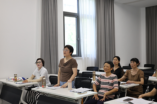 開(kāi)課伊始,經(jīng)驗(yàn)豐富的巫老師沒(méi)有急于教新歌,而是先結(jié)合學(xué)員基礎(chǔ)做“摸底”。通過(guò)引導(dǎo)大家清唱熟悉的《我和我的祖國(guó)》,快速掌握不同學(xué)員的音準(zhǔn)、氣息情況,再針對(duì)性地講解發(fā)聲技巧。“唱歌時(shí)要像聞花香一樣吸氣,讓氣息沉到肚子里。”老師一邊示范,一邊手把手糾正學(xué)員的姿勢(shì),課堂上時(shí)不時(shí)傳來(lái)陣陣練習(xí)聲與笑聲。