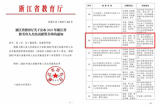 9月5日,浙江省教育廳公布了《關(guān)于公布2025年浙江省教書育人杰出貢獻(xiàn)獎(jiǎng)名單的通知》(浙教廳函[2025]204號(hào)),由海寧市職業(yè)高級(jí)中學(xué)牽頭,聯(lián)合嘉興市建筑工業(yè)學(xué)校、浙江經(jīng)濟(jì)職業(yè)技術(shù)學(xué)院、海寧市新奧汽車銷售服務(wù)有限公司共同完成的成果《工作站e+:中高企協(xié)同培育面向汽修行業(yè)升級(jí)的智檢精修高技能人才創(chuàng)新實(shí)踐》獲得浙江省中等職業(yè)教育教學(xué)成果獎(jiǎng)二等獎(jiǎng)。