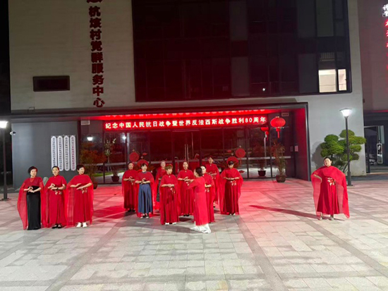 9月22日晚,在杭垓村村委廣場,一場由安吉縣社區教育學院杭垓學習中心組織、報福幼兒園章蕓老師指導的形體秀《共和國走向未來》成功排練演出,近20名杭垓形體班成員身著統一紅裙,以優雅的姿態和飽滿的熱情,為現場觀眾帶來了一場視覺與精神的雙重盛宴。