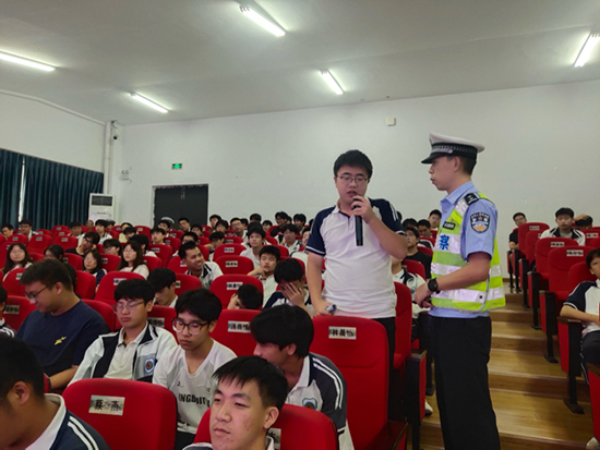 在隨后的互動環節,現場氣氛活躍。圍繞講座內容設置的交通安全知識搶答引起了同學們的踴躍參與,答對者獲得了特色禮品“小警猴”。在輕松愉快的氛圍中,交通安全知識進一步深入人心。