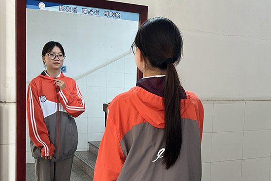 在教室鏡前或與同學(xué)互檢,從頭到腳,審視細(xì)節(jié),確保整體形象整潔、規(guī)范。