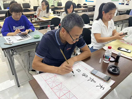 楷隸行草皆入趣,筆墨紙硯共迎新。9月22日上午,秋季書法班再度歸來。教室內墨香四溢,案桌上整齊擺放著宣紙、毛筆與硯臺。首次課上,學員們側耳傾聽,點頭記下要點。學員們于橫豎撇捺間,既學到了書法技巧,更感受到了傳統文化的溫潤魅力。