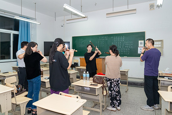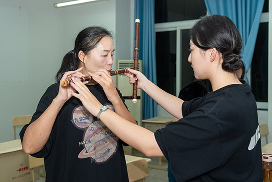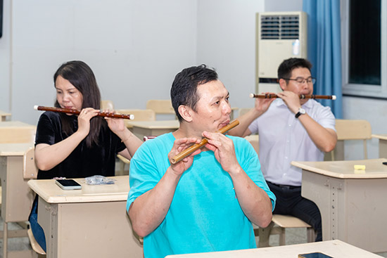 周四晚的竹笛班在北302教室開課,林珂羽老師從呼吸調(diào)控和指法基礎(chǔ)入手,帶領(lǐng)學員們步入竹笛藝術(shù)之門。學員們手持竹笛,認真吹奏,清越悠揚的笛聲在教室里回蕩,仿佛將大家?guī)肓艘粋€充滿詩意的音樂世界。