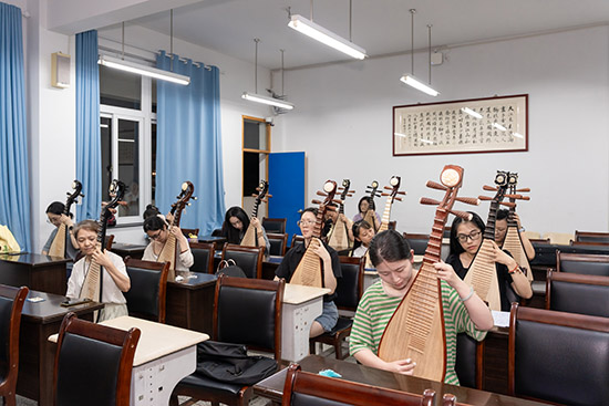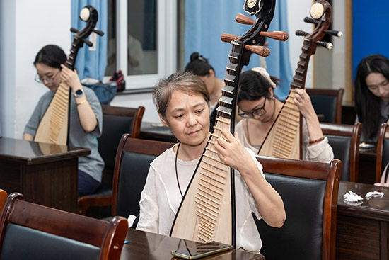 北301教室里,黎慶慧老師的琵琶聲悠揚動聽。學員們懷抱琵琶,專注地練習著指法和彈奏技巧。從基礎(chǔ)的音符到簡單的曲調(diào),每個人都在努力掌握這門古老的技藝,讓平湖派琵琶的傳承在夜校課堂上煥發(fā)新的生機。