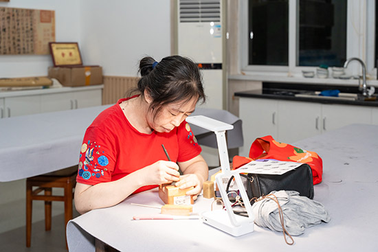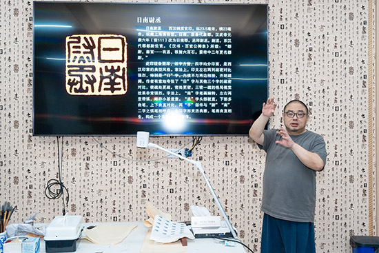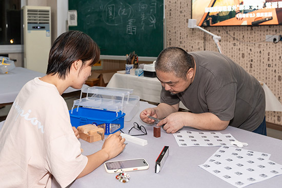 在北201教室,篆刻班的學員們齊聚一堂,沈呂峰老師親自指導。課堂上,學員們認真聆聽篆刻的基本原理,隨后在老師的示范下,拿起刻刀,小心翼翼地在印石上刻畫。每一刀都凝聚著專注與耐心,印章上的線條逐漸清晰,學員們的臉上露出了滿意的笑容。