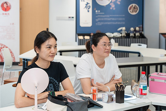 北204教室里,美妝班的學員們在馬佳燕老師的帶領(lǐng)下,學習面部結(jié)構(gòu)及五官比例的解析。學員們手持化妝工具,對照鏡子,一步步打造適合自己的妝容。老師不時走動,耐心解答學員們的疑問,課堂氣氛活躍,學員們的美麗蛻變正在進行。