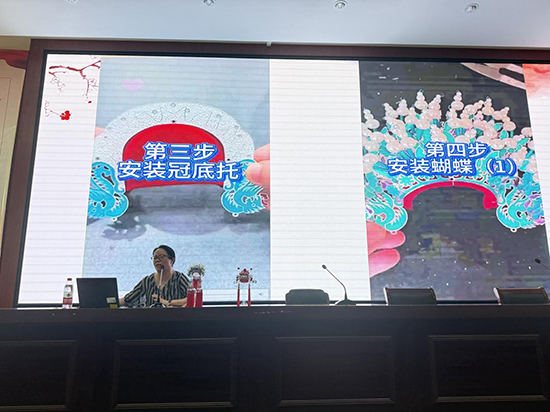 講座的核心亮點,在于李大師對 “迷你鳳冠” 這一創新文創產品的深度分享。她向大家生動展示了如何將舞臺上那些龐大、華麗、屬于帝王將相和后宮佳麗的鳳冠,通過精巧的設計與精湛的技藝,微縮成一件件精美絕倫、可置于案頭欣賞的文創珍品。從最初設計靈感的汲取,到材料的精心挑選,再到鑲嵌等數十道復雜工序的簡化與創新,李大師娓娓道來。她不僅展示了成品之美,更生動詮釋了非遺技藝如何在堅守核心精髓的同時,通過創造性轉化和創新性發展,巧妙融入現代審美與生活,使其煥發出嶄新的生命力。