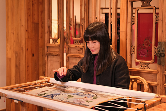 (3)非遺文化宣傳推廣:廖春妹積極參與國(guó)內(nèi)外文化交流活動(dòng),多次舉辦刺繡作品展,參與紀(jì)錄片拍攝,組織策劃刺繡大賽等。她的努力不僅弘揚(yáng)了中國(guó)刺繡文化,更為臺(tái)州刺繡贏得了廣泛的贊譽(yù)與認(rèn)可。2010年配合溫家寶總理訪問(wèn)韓國(guó),在韓國(guó)首爾中國(guó)文化中心舉辦“山魂海韻---浙江臺(tái)州中國(guó)畫(huà)暨刺繡作品展”;2011年在全國(guó)政協(xié)大禮堂舉辦“繡都意韻——全國(guó)工筆畫(huà)名家暨刺繡作品展”;2013年舉辦“繡都流韻刺繡藝術(shù)精品展暨全國(guó)工筆畫(huà)名家邀請(qǐng)展”;2014年參加中國(guó)藝術(shù)國(guó)際行與羅斯洛克集團(tuán)組織的美國(guó)“人與自然”文化交流活動(dòng);2015年參與CCTV4紀(jì)錄片《穿越海上絲綢之路》拍攝;2016年組織策劃、出資承辦繡都杯刺繡大賽;參與國(guó)家廣電總局與臺(tái)灣中視拍攝的《天下作坊》;赴臺(tái)灣參加浙江省文化節(jié)·臺(tái)州文化周;2017年參與CCTV4《外國(guó)人在中國(guó)》欄目拍攝;2018年參加在臺(tái)州府城刺繡博物館舉辦的基層文聯(lián)建設(shè)及民間工藝“雙創(chuàng)”座談會(huì),中國(guó)文聯(lián)黨組書(shū)記、副主席、書(shū)記處書(shū)記李屹出席;參加浙江省文化廳與巴黎中國(guó)文化中心合作的“法國(guó)•浙江文化年”系列活動(dòng);參加北京衛(wèi)視《創(chuàng)意中國(guó)2》欄目;2019年,在杭州浙江文化館舉辦“大美不言——近現(xiàn)代刺繡收藏作品展”;2020年,參加了上海·臺(tái)州周文化交流活動(dòng),與徒弟盧釔君現(xiàn)場(chǎng)演示臺(tái)州刺繡非物質(zhì)文化遺產(chǎn);參加了浙江省文聯(lián)名家孵化計(jì)劃工藝美術(shù)人才交流展。……廖春妹的身影無(wú)處不在,她用自己的行動(dòng)詮釋著對(duì)臺(tái)州刺繡文化的熱愛(ài)與執(zhí)著,為弘揚(yáng)中國(guó)刺繡文化做出積極貢獻(xiàn)。