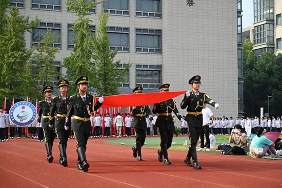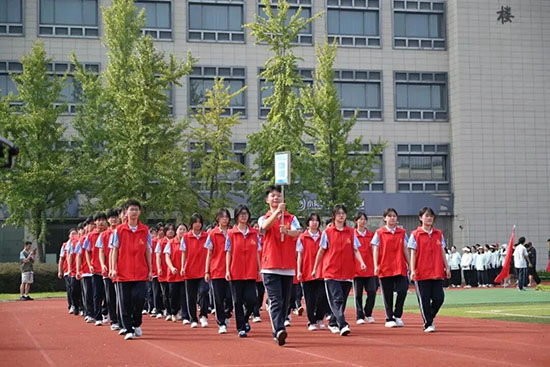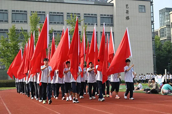 伴隨著雄壯的《運動員進行曲》,在國旗隊、會徽隊和紅旗隊的引領(lǐng)下,學(xué)院46個班級的運動方陣英姿颯爽、精神飽滿地有序入場。