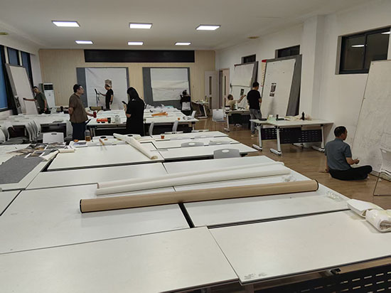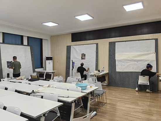 在國慶節與中秋節“雙節”的文化氛圍中,10月1日至10日,安吉縣社區教育學院昌碩分院聯合縣美術協會開展的美術高研班培訓正如火如荼進行。走進創作現場,寬敞明亮的畫室里,美術創作者們或專注于大幅畫面前勾勒細節,或圍繞創作思路交流探討,鋪滿桌面的畫紙、顏料與工具,盡顯創作的專業與熱忱。