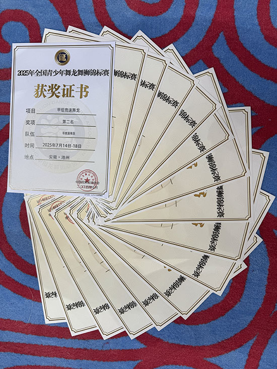 比賽中,職教富春龍的隊(duì)員們齊心協(xié)力,將巨龍演繹得栩栩如生。他們的動(dòng)作行云流水,或穿騰、或翻滾、或游弋,把龍的霸氣威武展現(xiàn)得淋漓盡致。經(jīng)過(guò)激烈角逐,隊(duì)員們憑借出色的發(fā)揮,最終榮獲甲組舞龍團(tuán)體二等獎(jiǎng);獲競(jìng)速舞龍第二名;獲規(guī)定套路第三名;獲自選套路第四名。這不僅是對(duì)他們個(gè)人努力的肯定,更是對(duì)學(xué)校舞龍項(xiàng)目教學(xué)成果的一次檢驗(yàn)。