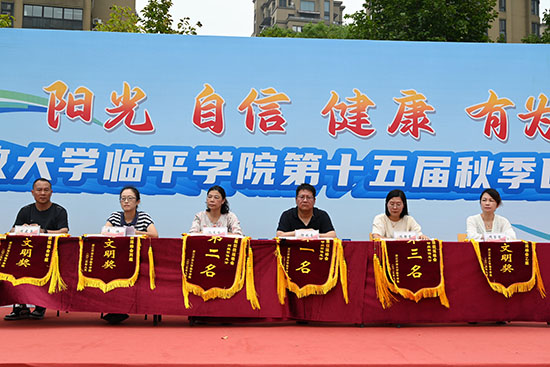 唐瑛副院長為閉幕式致辭。唐院長表示,在兩天半的運動會中,運動員們勇往直前,全力以赴;老師、裁判員全程陪伴,辛勤付出,展示了學院師生的良好精神風貌,獲得了體育競技和精神文明的雙豐收。運動會雖然已經結束,但全體師生要繼續發揚頑強拼搏、銳意進取的體育精神,用極大的熱情和向上的正能量去迎接下一階段的工作和學習。
