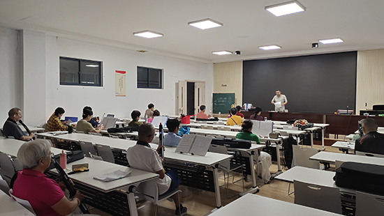 學員們學習熱情高漲,認真聆聽老師講解,并不時拿起樂器反復練習,遇到疑問及時向老師請教。現場氣氛輕松融洽,大家在互動交流中不僅提升了演奏技能,更結識了志同道合的朋友。