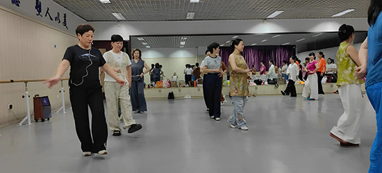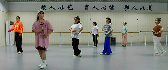簡短而莊重的開班儀式結束后,兩位老師便馬不停蹄地投入到了緊張而有序的教學中。她們首先帶領學員進行熱身走步,過程中,兩位老師耐心細致,不放過任何一個細節,親自示范步法與手勢,讓學員們能夠準確掌握每一個動作要領。隨后,根據學員的特點和自身優勢,將學員們巧妙地分為花旦和小生組,進行有針對性的教學。在兩位老師的悉心指導下,學員們迅速進入狀態,全神貫注地認真練習,現場學習氛圍濃厚。不一會兒,學員們便轉入了越劇經典劇目《打金枝·闖宮》的排練中。大家各展風采,將越劇的韻味展現得淋漓盡致,現場氣氛熱烈而有序,仿佛一場精彩的越劇盛宴正在徐徐拉開帷幕。