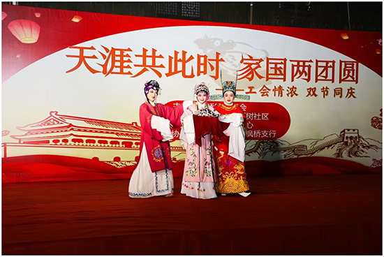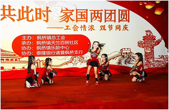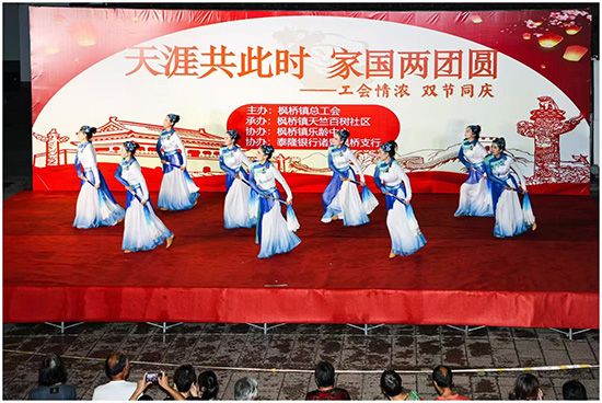9月30日晚,諸暨市楓橋鎮百樹社區黨群中心廣場燈火璀璨、人聲鼎沸。舞臺中央“天涯共此時 家國兩團圓”的字樣在燈光下格外醒目,由楓橋鎮總工會主辦、楓橋鎮天竺百樹社區承辦,“楓橋鎮樂齡中心”“泰隆銀行諸暨楓橋支行”協辦的“工會情濃 雙節同慶”晚會在此隆重啟幕。
