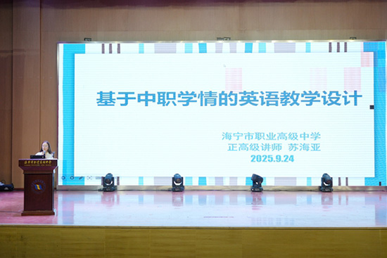 由海寧市職業高級中學英語正高級講師蘇海亞帶來《基于中職學生學情的英語教學設計》專題講座。蘇老師分析了目前中職學生的學情特征,結合中職教育由就業為導向轉變為就業升學并重的背景,依據“尊重差異、強調多元、崇尚個性”的教學理念,倡導中職英語的教學設計必須充分考慮學生的學情特征。并提出從改變學習環境、嘗試多種適合學生的教學方法出發,設計符合學生學情和需求的中職英語教學設計。