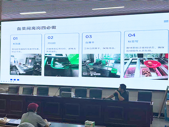 培訓(xùn)會上,孫捷副主任首先通過現(xiàn)場實拍圖片,直觀指出了當(dāng)前食堂工作中存在的九類典型安全隱患,包括地面積水、面粉未密封存放、防鼠板未規(guī)范使用等問題。針對這些隱患,他對照食品安全規(guī)范,對物品歸位、工具清潔、離崗管理、更衣戴口罩等環(huán)節(jié)提出了明確、細(xì)致的操作要求,強調(diào)全體員工應(yīng)在日常工作中嚴(yán)格落實各項衛(wèi)生管理制度,注重細(xì)節(jié),杜絕安全隱患。參訓(xùn)員工認(rèn)真聆聽、積極對照反思,紛紛表示將在今后工作中進一步增強責(zé)任意識,注重操作細(xì)節(jié),持續(xù)改進不足,切實將“隱患清零”落實到每一個工作環(huán)節(jié)。