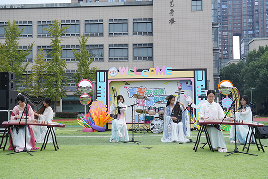 荷韻中國樂器社團:荷韻中國樂器社團以 “傳中華樂魂,賞絲竹雅韻” 為宗旨,匯聚古箏、箜篌、琵琶等傳統樂器愛好者。成員們用傳統樂器演奏《無情畫》,指尖清音與千年雅韻交融,將東方美學的浪漫娓娓道來,指導老師陳冰蓮的專業指導,讓這份傳統魅力愈發醇厚。