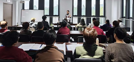 10月21日上午8時不到,安吉社區教育學院梅溪分院的聲樂教室內已暖意融融。30 余位老年聲樂班學員手持歌譜,靜待教師丁老師開啟當日的《聲聲慢》教學。?