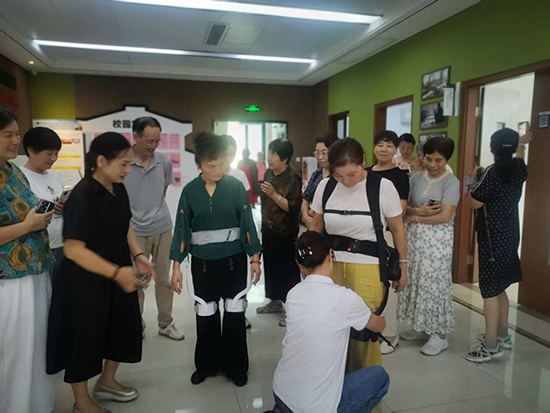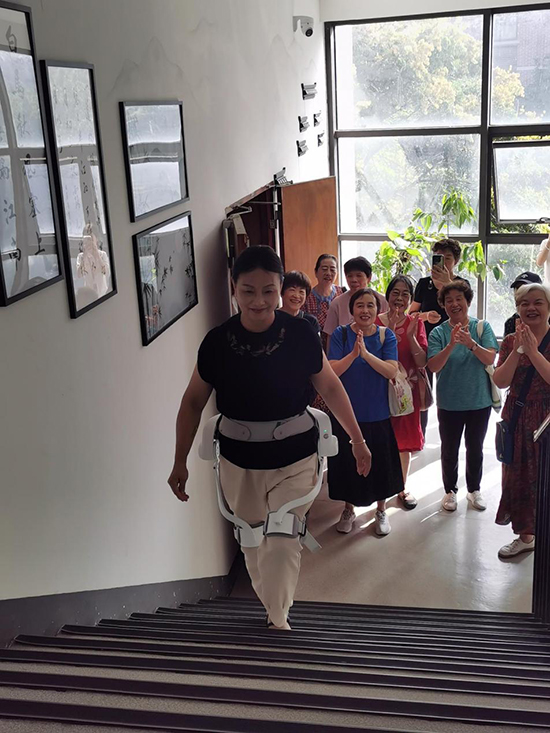 社區居民張阿姨今年68歲,在工作人員的幫助下緩慢穿戴好設備,試著走了十幾米后停下,笑著說:“平時走幾步就覺得腿酸,穿上這個感覺腳下輕了不少,要是社區以后能常有這種體驗,我們老年人也能多接觸新鮮科技!”學員們則對設備的“科技感”充滿好奇,圍著工作人員追問“傳感器怎么識別動作”“能不能調整助力大小”,現場提問聲、討論聲此起彼伏。