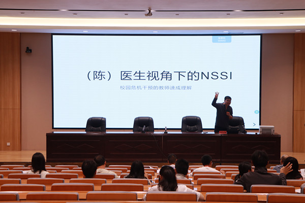 講座中,陳禮賢以“非自殺性自傷行為(NSSI)”為切入點,從神經醫(yī)學與精神衛(wèi)生的專業(yè)角度,系統(tǒng)剖析了學生心理危機的形成機制與干預路徑。通過生動的情境模擬,還原了校園中可能出現的心理危機事件,并借助“神經系統(tǒng)反應模型”闡釋了自傷行為背后的生理與心理動因。他指出,自傷并非單純的行為問題,而往往與情緒調節(jié)障礙、人際關系壓力、神經遞質分泌異常等深層因素密切相關。陳禮賢強調,校園心理危機干預是一個系統(tǒng)性工程,需要班主任、德育處、心理教師、保安科等多方協同,結合校規(guī)校紀與學生實際情況,形成“早發(fā)現、快反應、科學干預”的工作機制。此外,他還提醒教師,要重視學生行為背后的生理與情緒信號,避免簡單歸因或道德評判,同時也要關注自身情緒與認知局限,通過“專業(yè)抱團”提升整體應對能力。