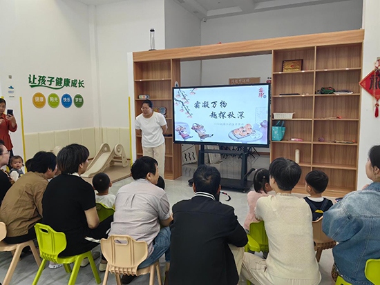活動中,老師通過生動講解,帶領孩子們認識霜降節氣的氣候特征與物候知識。問答互動激發探索熱情,現場洋溢著濃厚的學習氛圍。