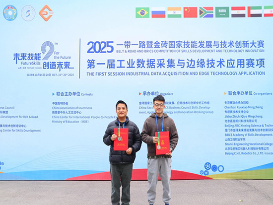 近日,在2025一帶一路暨金磚國家技能發展與技術創新大賽——第一屆“工業數據采集與邊緣技術應用”賽項(教師組)中,海鹽職業教育中心何晨陽、張忠杰教師團隊憑借出色的專業能力和穩定的現場發揮,榮獲全國二等獎的優異成績!