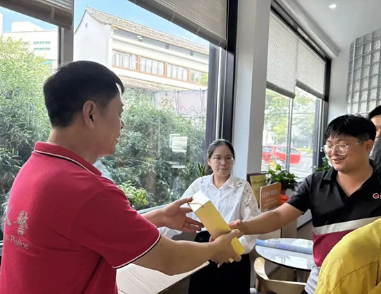 愛心禮包暖人心:小物件藏大關(guān)懷,情誼留心間。活動(dòng)接近尾聲,紅楓義警們捧著愛心禮包走向大家——里面裝著保溫杯、反光貼,還有印著交通安全標(biāo)語的小扇子。“天氣轉(zhuǎn)涼了,喝口熱水暖暖身子;晚上騎車,反光貼能讓別人早點(diǎn)看見你。”義警們的叮囑像秋日暖陽,熨帖又實(shí)在。“平時(shí)總見他們?cè)诼房谑鑼?dǎo)交通、在街邊幫人指路,今天一起玩、一起學(xué),才更懂‘義警’倆字的分量。”一位環(huán)衛(wèi)工人的話滿是感動(dòng);外賣小哥們也紛紛點(diǎn)贊:“感覺自己被惦記著,心里熱乎乎的。”