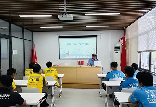 安全課“接地氣”:把守護(hù)說進(jìn)勞動(dòng)者心里。“師傅們天天在路上跑,安全比啥都重要!”楓橋鎮(zhèn)交警中隊(duì)民警俞洋飛手持事故案例圖,為外賣員、環(huán)衛(wèi)工人帶來“關(guān)愛生命 安全出行”主題交通安全課。他不僅細(xì)致拆解騎行規(guī)范、路口觀察要點(diǎn),還手把手教大家突發(fā)情況避險(xiǎn)技巧,句句貼緊戶外勞動(dòng)者的日常。臺(tái)下,外賣小哥、環(huán)衛(wèi)工人聽得格外認(rèn)真。“我們天天在路邊巡邏,知道他們風(fēng)里來雨里去的不易。”俞洋飛的話道出牽掛;紅楓義警老陳更是感慨:“這課聽得實(shí)在!是真把我們的安全放在了心上。”