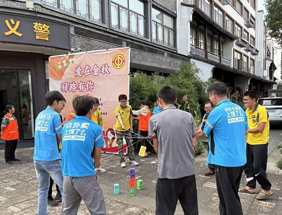 趣味游戲藏歡笑:玩著學(xué)安全,默契滿現(xiàn)場(chǎng)。安全課一結(jié)束,趣味游戲區(qū)變成了歡樂的海洋。紅楓義警早已備好旱地冰壺、“一錘定音”、同心搭高塔、安全飛行棋四大項(xiàng)目。“來,咱們組隊(duì)!”義警周偉國(guó)拉著幾位外賣小哥直奔旱地冰壺區(qū)。4人一組的比賽里,有人用力過猛讓冰壺“跑偏”,引得全場(chǎng)哄笑;有人穩(wěn)扎穩(wěn)打?qū)⒈鶋鼗浇K點(diǎn),隊(duì)友們的歡呼聲響徹現(xiàn)場(chǎng)。“一錘定音”區(qū)更熱鬧,環(huán)衛(wèi)工人阿姨兩人一組,揮著小錘瞄準(zhǔn)木墩,“砰砰”聲中,木墩一個(gè)個(gè)被擊落,阿姨們樂得像孩子般拍手,義警們趕緊遞上紙巾:“阿姨您真厲害!”最讓人揪心又開心的是“同心搭高塔”。10人一組的隊(duì)伍里,外賣員、環(huán)衛(wèi)工人、紅楓義警并肩作戰(zhàn),有人遞積木、有人扶塔身,“慢點(diǎn),左邊歪了”“再加一層,穩(wěn)住!”的提醒聲此起彼伏。當(dāng)高高的“積木塔”穩(wěn)穩(wěn)立在桌上時(shí),所有人都露出了成就感滿滿的笑容,這一刻,陌生的彼此早已默契十足。安全飛行棋旁,4人輪流擲骰子——走到“不闖紅燈”前進(jìn)三步,踩到“逆行危險(xiǎn)”后退兩步。“原來下棋也能學(xué)安全知識(shí)!”一位外賣小哥笑著說。義警隊(duì)長(zhǎng)陳曉芳在旁補(bǔ)充:“可不是嘛!平時(shí)在路上,每一步都得像走棋一樣心里有數(shù)。”