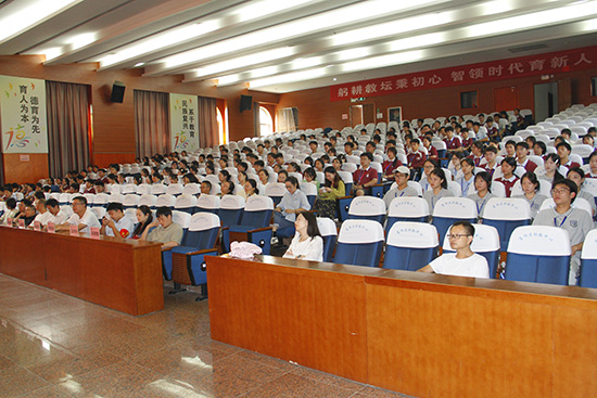 中午12時40分,動員大會在莊嚴而熱烈的氛圍中拉開帷幕。精神飽滿的師生們走過紅地毯,并在報告廳門口的簽名墻上鄭重署名,展現了參賽者的信心與決心。會議由教務處副主任陳宇絢主持。大會上陳建榮副書記首先對學校近年競賽成績進行了系統分析,通過詳實的數據展示了學校在各級賽事中的穩步提升。他在回顧歷年成績的基礎上,也對未來賽事發展提出期望,勉勵師生延續優良傳統,在各級競賽舞臺上不斷突破自我,展現富陽職教學子的卓越風采。