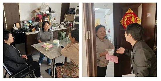 活動當天,社區工作人員帶著軟糯香甜、蘊藏“步步登高,健康長壽”寓意的糕點分組前往戶籍老人家中。工作人員與老人們親切交談,仔細詢問他們的身體狀況和生活情況,叮囑他們天氣轉涼,注意添衣保暖。一句句暖心的話語,一聲聲細心地囑咐,給老人們帶去了社區的關愛,讓老人感受到社會大家庭的溫暖。