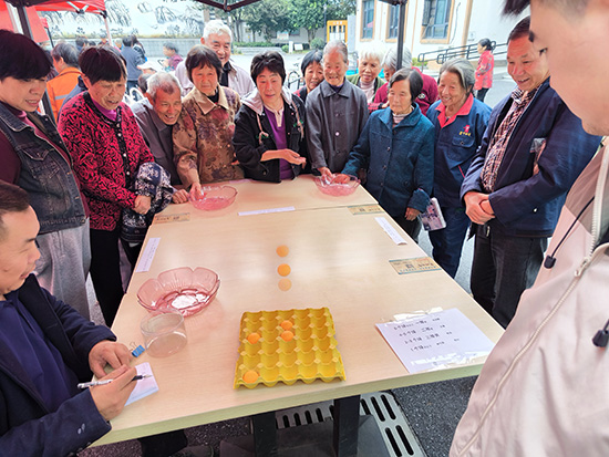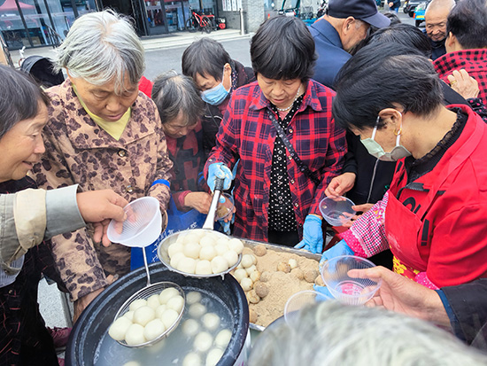 趣味互動(dòng)專區(qū)設(shè)置兩大特色活動(dòng):一是“福氣滾滾來(lái)”投乒乓球游戲:游戲操作簡(jiǎn)單、趣味性強(qiáng),適配各年齡段長(zhǎng)者,既能活躍現(xiàn)場(chǎng)氣氛,又能鍛煉手眼協(xié)調(diào)能力。 二是“團(tuán)圓甜蜜蜜”驢打滾現(xiàn)場(chǎng)制作分享:邀請(qǐng)村內(nèi)廚藝志愿者與工作人員協(xié)作,現(xiàn)場(chǎng)準(zhǔn)備湯圓粉、黃豆粉、芝麻粉等食材,手工制作驢打滾。以“團(tuán)圓團(tuán)子”寓意鄰里和睦,通過(guò)美食分享傳遞“家”的溫暖,弘揚(yáng)傳統(tǒng)文化。