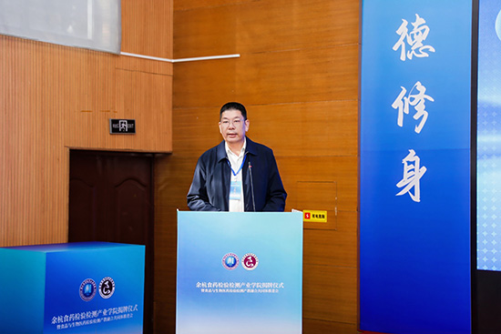 儀式伊始,余杭區人民政府副區長羅建強代表區政府致歡迎辭。他指出,食品藥品安全是重大民生工程,近年來余杭區圍繞“全球生物醫藥研發高地”目標,依托良渚生命科技小鎮集聚產業資源,構建生命健康產業生態圈。此次聯合浙江經貿職業技術學院、省骨干龍頭企業浙江恒澤生態農業科技有限公司,成功申報全省首批縣域產業學院,正是響應省教育廳縣域產業學院建設政策的關鍵舉措,旨在打造“人才培養、技術研發、社會服務”三位一體的產業創新平臺。“學院將推動學習場景向檢驗實驗室、生產一線延伸,通過‘培養方案共定、實訓基地共建、教學團隊共組、科研項目共擔、就業崗位共促’,為余杭輸送懂理論、精操作、善創新的食藥檢驗檢測人才。”羅建強表示,區政府將持續強化政策賦能與資源整合,全力支持學院發展。