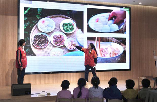 簽約儀式后,學校幼兒保育專業學生們為南太湖幼兒園的幼兒們帶來一場生動有趣的志愿服務活動《江南童韻樂——綠青山小調組歌音樂活動》。活動中,學生們化身“小老師”,用童趣化的語言向幼兒講解《綠青山小調組歌》中蘊含的生態環保理念與湖州本土非遺文化,通過歌曲學唱、節奏律動、樂器互動等形式,引導孩子們感受音樂之美、自然之美。幼兒們積極參與、踴躍互動,現場氛圍熱烈溫馨。