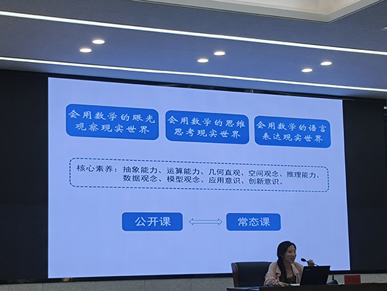 培訓(xùn)期間,浙江省教育廳教研室初中數(shù)學(xué)教研員李惟峰作主題為《數(shù)學(xué)教育的新坐標(biāo)——從知識(shí)傳授到創(chuàng)新思維》的專題講座,李老師從創(chuàng)新思維培養(yǎng)的背景、創(chuàng)新思維培養(yǎng)的關(guān)鍵、創(chuàng)新思維培養(yǎng)的建議三個(gè)維度深刻闡述了創(chuàng)新思維培養(yǎng)的重要性、內(nèi)容和路徑,為參訓(xùn)教師從“知識(shí)傳授”走向“素養(yǎng)教學(xué)”的轉(zhuǎn)變提供了理念上的更新和實(shí)踐上的引領(lǐng)。寧波市教育局教研室初中數(shù)學(xué)教研員楊一麗作主題為《理解課標(biāo) 解構(gòu)教材 賦能教學(xué)》的專題講座,講座從課標(biāo)主要的突破、教材修訂的主要方面、教學(xué)的思考等方面展開,同時(shí)結(jié)合課例分析讓參訓(xùn)教師對(duì)課堂上如何讓學(xué)生的思維得到生長(zhǎng)與升華有了直觀的感知,為研題提供方向和框架。湖州市教育科學(xué)研究中心初中數(shù)學(xué)教研員沈瑩琪作主題為《讓孩子學(xué)會(huì)學(xué)習(xí):新課標(biāo)下初中數(shù)學(xué)深度教學(xué)的設(shè)計(jì)與思考》的專題講座,沈老師通過幾個(gè)案例的分析讓參訓(xùn)教師明白如何實(shí)現(xiàn)評(píng)價(jià)與教學(xué)的一致性并在教學(xué)中怎樣實(shí)現(xiàn)高路遷移和深度教學(xué),同時(shí)還強(qiáng)調(diào)數(shù)學(xué)教師一定要學(xué)會(huì)學(xué)習(xí),要努力把我們的數(shù)學(xué)課上得更深一點(diǎn)、更有味道點(diǎn),讓孩子們學(xué)起來更輕松更愉快。